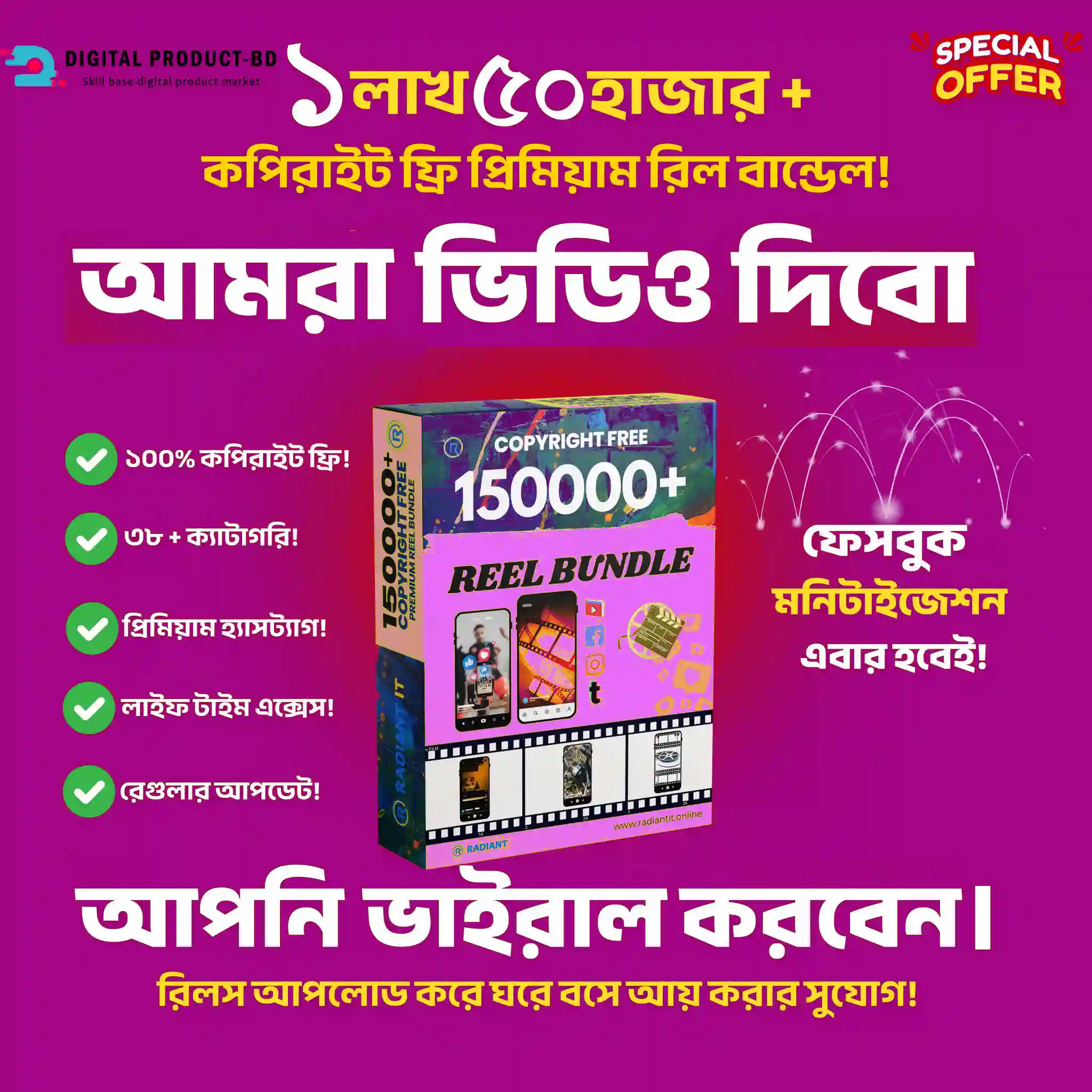 ১ লক্ষ ৫০ হাজারের বেশি প্রিমিয়াম কপিরাইট ফ্রি রিল বান্ডেল ।